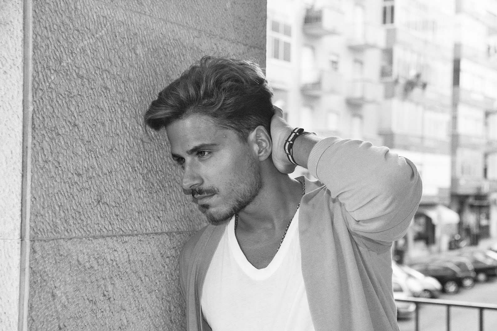 T-SHIRT: Dsquared | PANTS: Hugo Boss | CARDIGAN: Tom Ford | SHOES: Zara | WATCH: Uniform Wares