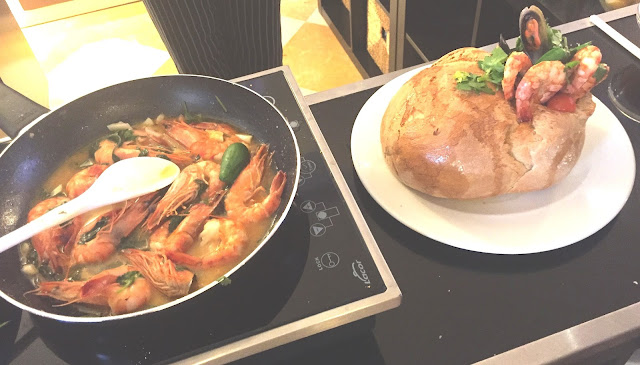 Eu tive a oportunidade de experimentar a açorda de camarão e mexilhão servida em pão rústico preparada pela chefe residente em formato showcooking como podem ver nas fotos em cima, e gostei muito do que provei. Este prato tradicional português pode ser degustado todas as sextas-feiras.