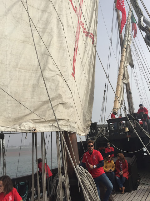 Num destes dias fui ter uma experiência de como viver numa caravela e conhecer de perto todos os passos de como comandá-la. Eram 9h da manha estávamos nós a começar esta aventura na Caravela Vera Cruz entre velas e amarras, puxar velas não é tarefa fácil e são precisas muitas mãos para o fazer, o intuito era passar por todas as actividades que tornam possível a sua navegação nomeadamente: leme, subir e descer velas... A experiência foi muito enriquecidora e conseguiu-se ter uma pequena de experiência do que é uma regata à vela e de como os nossos descobridores portugueses navegavam por mares e rios.
