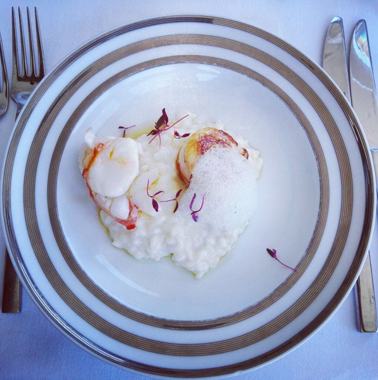 Risotto com lavagante e emulsão de bacalhau
